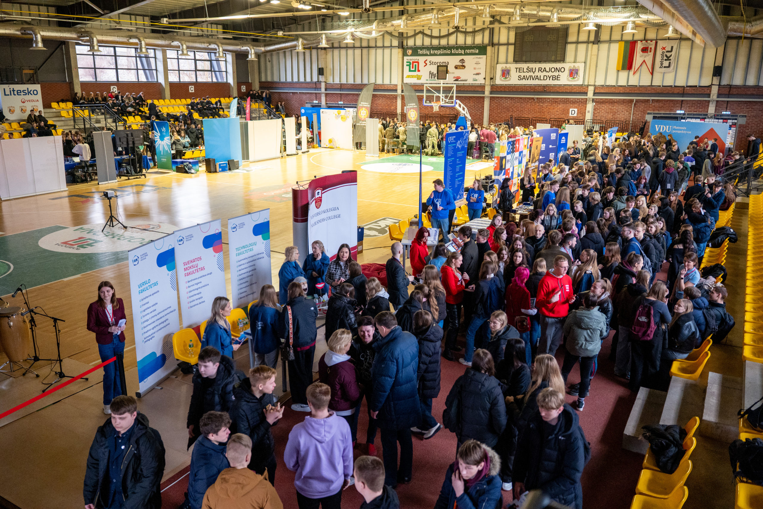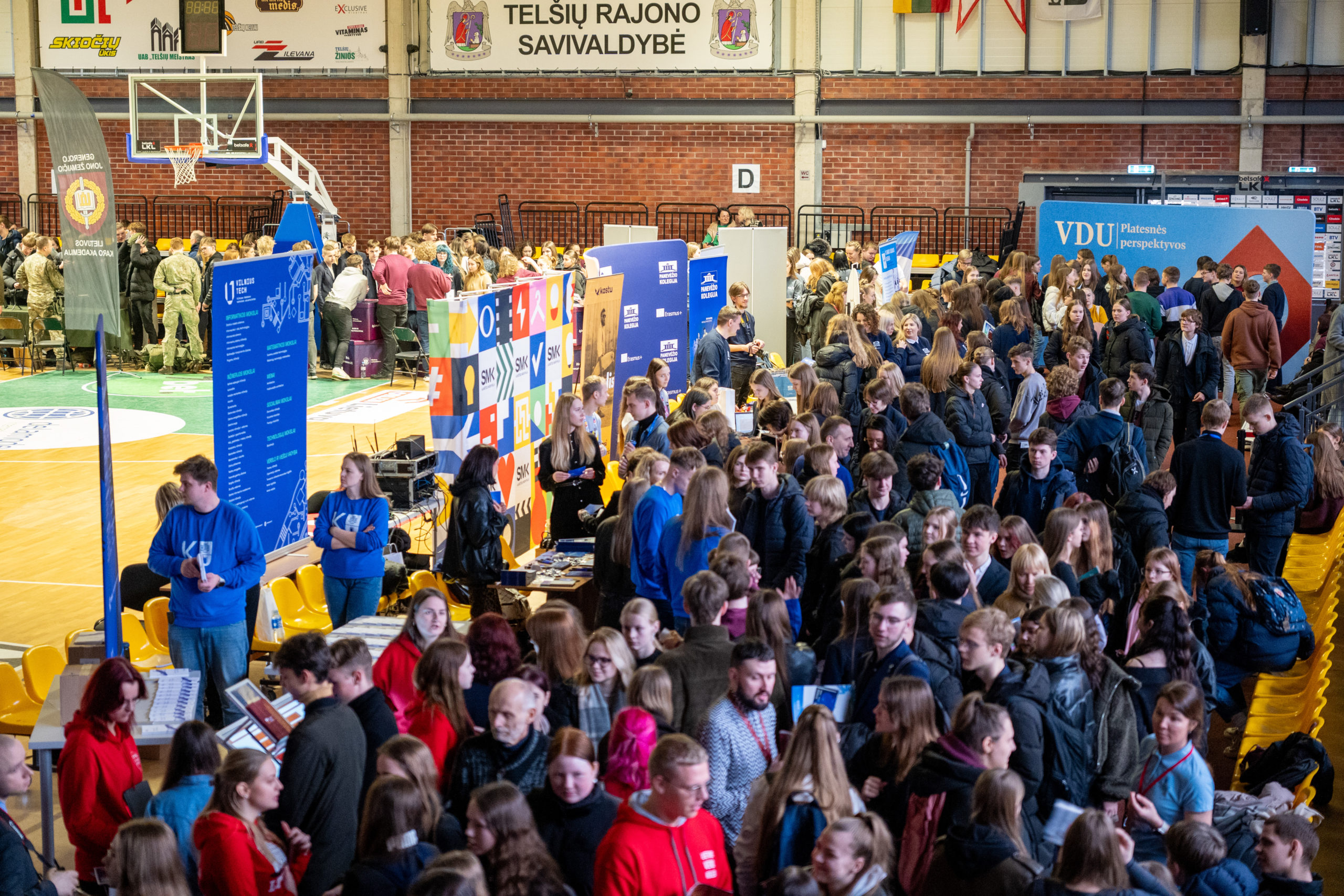 Į Telšių sporto areną pristatyti savo studijų programų, papasakoti apie įstojimo galimybes ir studentišką gyvenimą atvyko 10 Lietuvos universitetų ir 12 kolegijų. Apie galimybes studijuoti užsienyje mokiniai išgirdo iš Kalba.lt ir Kastu International atstovų. Patrauklūs VšĮ Telšių jaunimo centro ir Užimtumo tarnybos regioninio karjeros centro stendai kvietė susipažinti su jų veikla, atlikti karjeros testus, sukti „Laimės ratą“. Arenoje šventinę nuotaiką kūrė jaunieji būgnininkai Benas, Elijus, Gustas, Ugnius ir jų vadovas Artūras Dargužis.