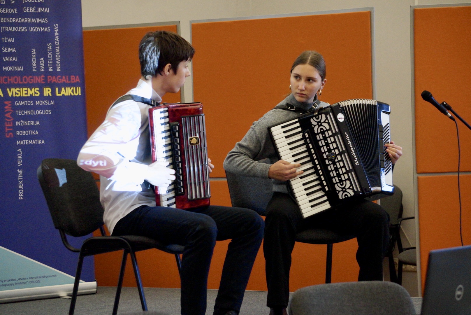 Konferencijos dalyvius muzikiniais kūriniais pasveikino Telšių meno mokyklos mokiniai Ignas Narvydas ir Ugnė Kačinskaitė, vadovė Vilma Jokubaitienė.