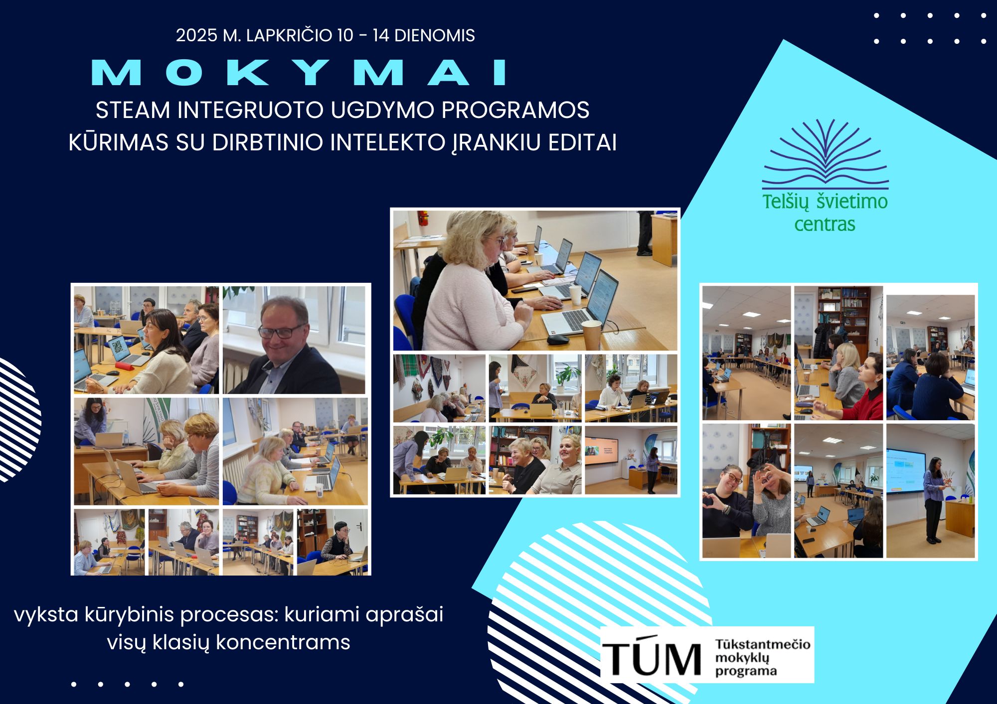 Telšių švietimo centras dėkoja visiems pedagogams už aktyvų dalyvavimą, įsitraukimą ir dalinimąsi patirtimi. Kartu žengiame dar vieną žingsnį link pažangaus ir inovatyvaus ugdymo Telšių rajono mokyklose.