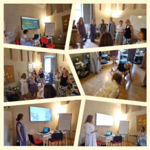 Vienas stipriausių mokymų akcentų – savęs pažinimo gilinimas. Mokėmės padėkoti sau, įvertinti savo stiprybes ir augimą. Kursų pabaigoje lektorė kiekvienam dalyviui įteikė pažymėjimus kartu su nuoširdžiais žodžiais apie tai, kas buvo pastebėta ir įvertinta per visą savaitę.