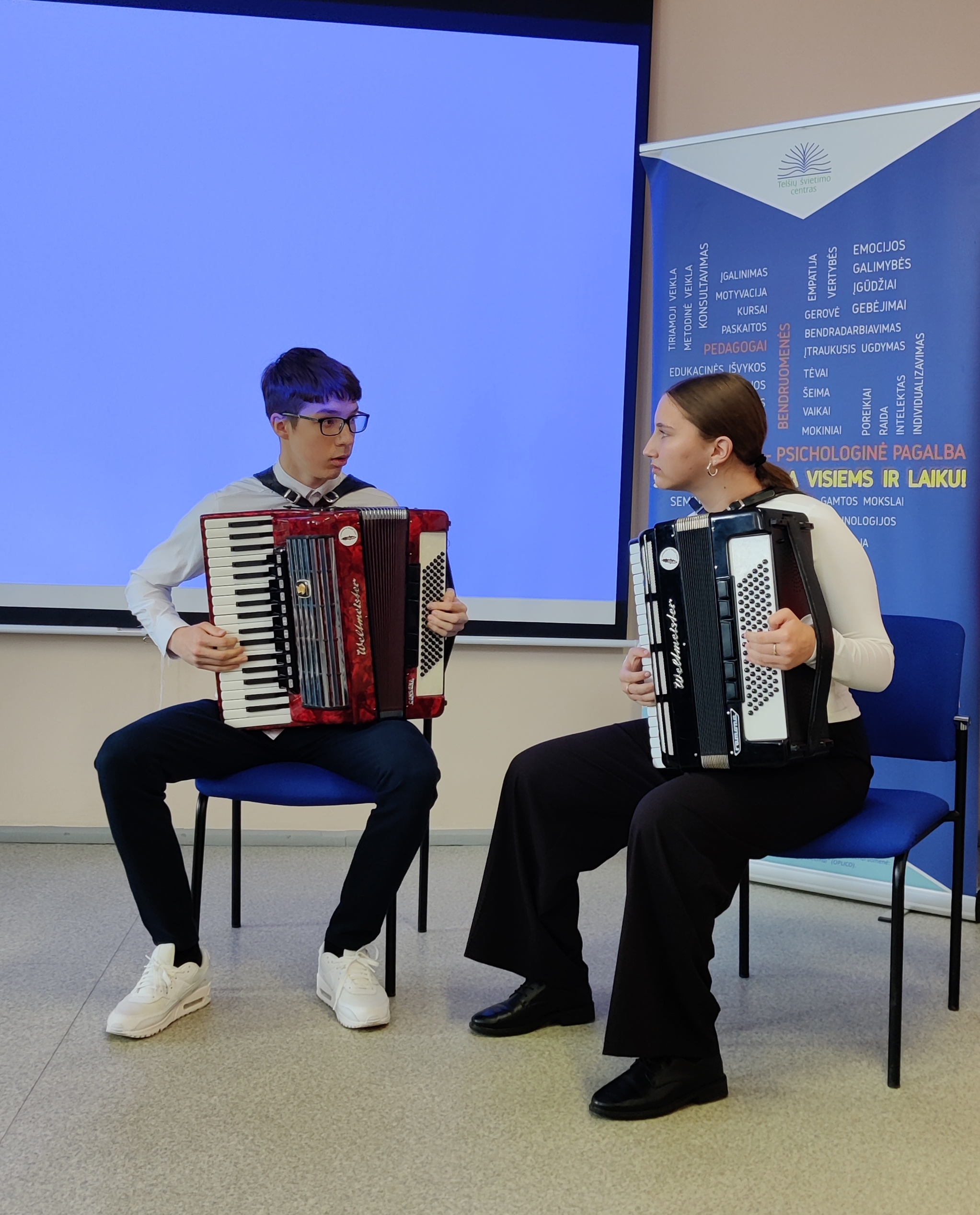 Konferencijos dalyviams nuotaikingus kūrinius dovanojo Telšių meno mokyklos mokiniai, XV tarptautinio akordeonistų konkurso prizininkai, Ugnė Kačinskaitė ir Ignas Narvydas. Jų vadovė Vilma Jokubaitienė.