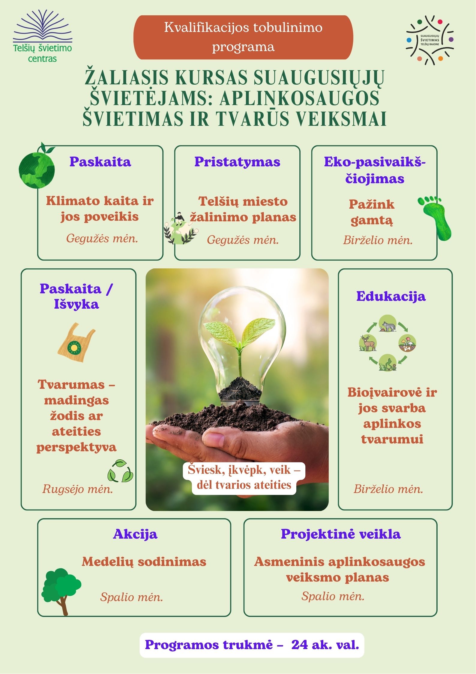 Atsižvelgiant į Europos žaliojo kurso tikslus bei vis augantį poreikį mažinti žmogaus daromą poveikį aplinkai, aplinkosaugos švietimas tampa vienu iš esminių įrankių skatinant visuomenės sąmoningumą ir pokytį elgsenoje. Suaugusiųjų švietėjai atlieka ypatingą vaidmenį, nes jie dirba su įvairių patirčių, amžiaus ir socialinių grupių žmonėmis, gebėdami skleisti žinias plačiai ir įtaigiai. Dalyvaudami programoje suaugusiųjų švietėjai ugdo kritinį mąstymą ir refleksiją, padedančius vertinti žmogaus poveikį aplinkai ir pasirinkti aplinkai palankesnius veiksmus.